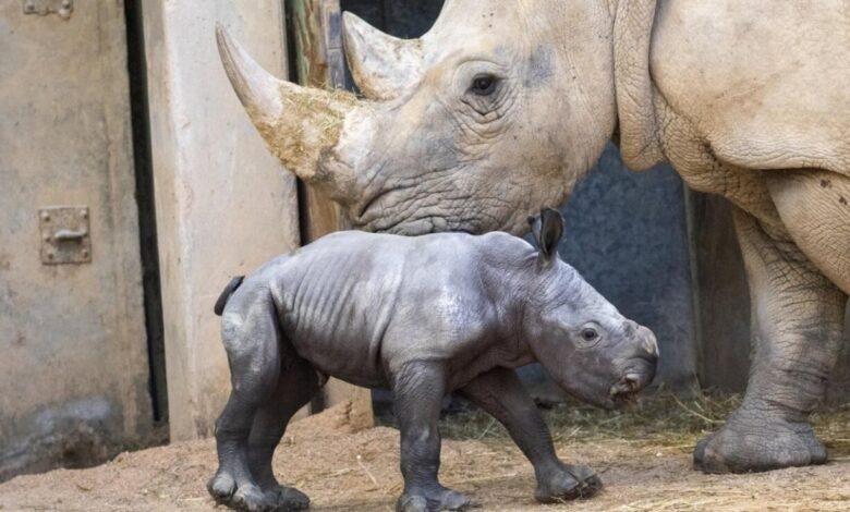 تولد بچهکرگدن سفید در یک باغوحش/ عکس